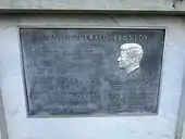 The large bas-relief sculpture and memorial to John F. Kennedy is installed in the parking lot of The Grotto, a Catholic shrine and sanctuary formally known as the National Sanctuary of Our Sorrowful Mother, located at Northeast Sandy Boulevard and 85th Avenue in Portland's Madison South neighborhood.[2] It was created in 1965 by an unknown artist. The plaque displays Kennedy's profile, the same seen on the Kennedy half dollar.[1]