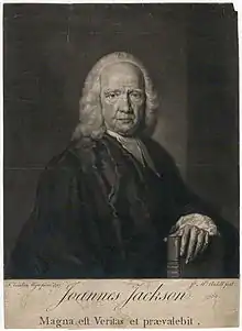 This article incorporates text from a publication now in the public domain: Gordon, Alexander (1892). "Jackson, John (1686-1763)". In Lee, Sidney (ed.). Dictionary of National Biography. 29. London: Smith, Elder & Co.