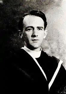 Scullion was the only son of John William Scullion and Daisy Sarah Scullion (née Sullivan) and he had two sisters, Lenore and Franceline.[1] At the time of his birth his father was the hotelkeeper of the Star Hotel, Clarendon Street, South Melbourne but with continuing breaches of the trading laws their licence was revoked at the end of 1929.[2] The family moved to North Melbourne where Scullion attended Saint Joseph's CBC North Melbourne between 1933 and 1938[3] before moving on to St. Kevin's College, Melbourne to complete his secondary education. By the end of his schooling he was already a gifted speaker winning awards at annual concerts and statewide eisteddfods.[4]