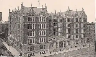 Haaren Hall, also known as the 'Tenth Avenue building or, simply, the T building, is the main campus building of John Jay. Located at 899 10th Avenue, it houses the majority of the administrative departments and classrooms. Originally designed by Charles B.J. Snyder to house De Witt Clinton High School, the building was erected in 1903.[55] In 1988, Haaren Hall was acquired by John Jay and now contains the Lloyd Sealy Library, the Gerald W. Lynch Theater, a gymnasium, and a swimming pool.