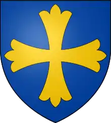 Arms of John Paveley: Azure, a cross patoncée or, as depicted in St John's Gate, Clerkenwell.[7] These were also the arms used by the Paveley family of Broke in Wiltshire, whose heir was the Cheney family and subsequently Robert Willoughby, 1st Baron Willoughby de Broke (d.1502), who quartered the Paveley arms. The Paveley Rudder was a heraldic badge used by the Paveley family,[8] later adopted by the Cheneys (it survives in its earliest manifestation sculpted on the monument in Edington Priory Church to Sir Ralph Cheney (d.1401) of Broke,[9]) and by Robert Willoughby, 1st Baron Willoughby de Broke.