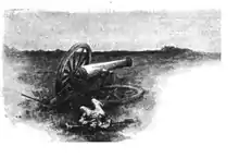 At Fredericksburg, Pelham's guns, positioned well in advance of the main Confederate lines, held up the entire flank of the Union Army of the Potomac for several hours, enabling the Confederates to repel a series of strong attacks. General Robert E. Lee commended Pelham in his official report for "unflinching courage" while under direct fire from multiple Union batteries.[2] Pelham was, at the time, commanding only two guns that were in service, but with those batteries for a time was able to enfilade the entire advancing Federal lines of battle.