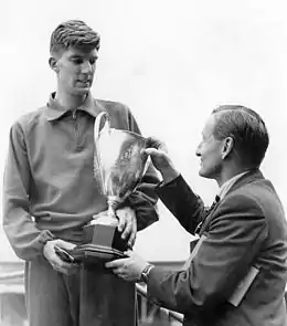 ![]() Treloar receives a prize from Lord Burghley in 1948 | |