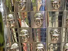 Johnnie Parsons had the dubious distinction of being the only Indianapolis 500 winner to have his name misspelled on the Borg-Warner Trophy. The silversmith carved "Johnny" instead of "Johnnie." He had a son named Johnny who competed at Indy a dozen times. In 1991, during a trophy restoration project, it was proposed to correct the spelling, albeit posthumously. However, it was decided to keep the error intact, as part of the trophy's lore.