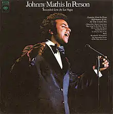 Johnny Mathis in Person: Recorded Live at Las Vegas is a live album by American pop singer Johnny Mathis that was recorded at Caesars Palace[3] and released on December 22, 1971,[1] by Columbia Records. All but five of the 23 songs performed had appeared on his studio albums, while the five previously unrecorded songs (described below) have not appeared on a Mathis studio album since.