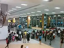 Jorge Chávez International Airport (IATA: LIM, ICAO: SPJC, formerly SPIM), (Aeropuerto Internacional Jorge Chávez), is Peru's main international and domestic airport. It is located in Callao, 11 kilometers (7 mi) northwest from Lima Center, the nation's capital city and 17 km from the district of Miraflores. During 2017, the airport served 22,025,704 passengers. Historically, the airport was the hub for Compañía de Aviación Faucett and Aeroperú. Now it serves as a hub for many aviation companies. The airport was named after Peruvian aviator Jorge Chávez (1887 - 1910).