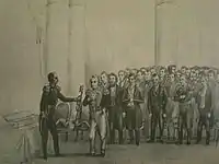In 1847 President José Tadeo Monagas, who was put into power by Páez, dispersed the Congress and proclaimed himself dictator. Páez led a rebellion against him but was defeated by General Santiago Mariño in the 'Battle of the Araguatos', imprisoned, and eventually exiled.[3]
