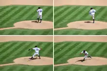 Valverde throws just two pitches, a four-seam fastball (93–96 mph) and a forkball (84–87). He throws a slightly higher percentage of forkballs to left-handed hitters. He is comfortable using the pitch in almost all counts, although he throws it most often when it is 0–2 or 1–2.[34] Valverde's control is sometimes spotty, as he has an above average career rate of 3.9 walks per nine innings.[35] This balances a dominating 10.3 strikeouts per nine innings ratio.[13]