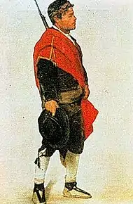 The jota first came to Alta California during the Spanish period and was an important part of dance repertoires among Californios.[2] Later, the renowned guitarist Manuel Y. Ferrer, who was born in Baja California to Spanish parents and learned guitar from a Franciscan friar in Santa Barbara but made his career in the San Francisco Bay Area, arranged jotas for the guitar.[3] During the early 20th century, the jota became part of the repertoire of Italian American musicians in San Francisco playing in the ballo liscio style.[4] Two jotas collected by Sidney Robertson Cowell for the WPA California Folk Music Project in 1939 were played by bands of different national origins: one was Mexican American, the other Portuguese American.[5]