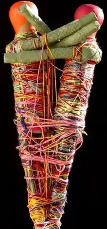 Judith Scott (May 1, 1943 – March 15, 2005) was American fiber sculptor, born with Down Syndrome and deaf.[2] She was internationally renowned for her art.[3] In 1987, Judith was enrolled at the Creative Growth Art Center in Oakland, California which supports people with developmental disabilities.[4] There, Judith discovered her passion and talent for abstract fiber art and she was able to communicate in a new form.[2] An account of Scott's life, Entwined: Sisters and Secrets in the Silent World of Artist Judith Scott (2016) has been written by her twin sister.
