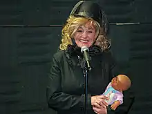 In 1984, she released her first EP, a five-song album called Goddess in Progress.[4] The album, parodies of popular '80s music combined with her valley girl personality, was quickly discovered by the Dr. Demento Show. The songs "'Cause I'm a Blonde" and "The Homecoming Queen's Got a Gun" were given radio airplay across the world.[5] The latter was a spoof on stereotypical 1950s' teen tragedy songs, with cheerleaders' heads and pompoms being blown to pieces.
