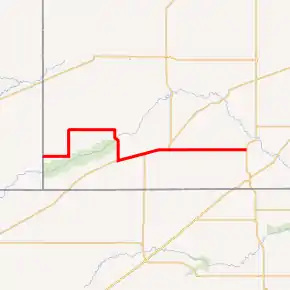 K-51 begins at the Colorado state line, acting as a continuation of County Road M. The highway travels due east through flat rural farmlands for 7.9 miles (12.7 km) then intersects K-27. At this point K-51 turns north and begins to overlap K-27. The two highways continues north for 3.5 miles (5.6 km) then crosses an unnamed creek. The highway continues north through more farmlands for another two miles (3.2 km) then crosses North Fork Cimarron River. K-51 and K-27 continue north for roughly 2.6 miles (4.2 km) then curves east at Road 9 and U Road. They continue east through flat farmlands for about six miles (9.7 km) and enters Richfield as South Boulevard. About 0.5 miles (800 m) into the city K-27 turns north onto Main Street, as K-51 continues east. K-51 then crosses North Fork Cimarron River again as it exits the city.[4] The highway continues east through rural farmlands for 7.1 miles (11.4 km) then curves south at Road 23 and U Road. It continues south for about 2.5 miles (4.0 km), where it curves southeast and crosses Cimarron River. The highway then curves back south and after 1.8 miles (2.9 km) intersects Road. From here it continues south for another 4.3 miles (6.9 km) then enters Rolla.[5][6]