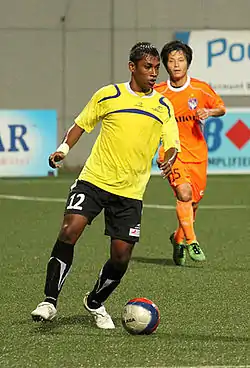 ![]() K. Sathiaraj in action for Woodlands Wellington in a S.League match during the 2012 S.League season. | |||