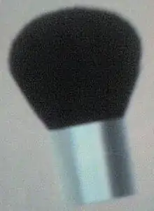 A kabuki brush (sometimes called mushroom brush) is a makeup brush[1] with dense to fluffy bristles and most recognizably has a short handle. The brush head is most often rounded, though it can also be flat. Traditionally, the bristles are made of natural materials like animal hair (e.g., goat or horse hair), but most brushes available now on the market have synthetic bristles.