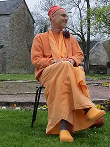 Kadamba Kanana Swami took sannyasa initiation[4] from his guru, Jayadvaita Swami,[5] in 1997 and now travels extensively across the world spreading the message of Lord Caitanya’s movement.[6] Some of his ongoing missions include hosting the Festival of Chariots in Soweto, Johannesburg, attending the annual Czech Summer Camp, and lecturing at the Bhaktivedanta College in Radhadesh, Belgium. He also leads the annual King's Day festival harinam, where hundreds of devotees take to the bustling streets of Amsterdam for a day of singing and dancing.[7]