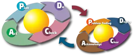 The cycle of kaizen activity can be defined as: "Plan → Do → Check → Act". This is also known as the Shewhart cycle, Deming cycle, or PDCA.