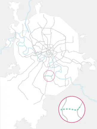 The Kakhovskaya line (Russian: Кахо́вская ли́ния, IPA: [kɐˈxofskəjə ˈlʲinʲɪjə]) (Line 11A, formerly Line 11)[2] was an abolished line of the Moscow Metro. Although the line was formed in 1995, all of the stations date to 1969 when they opened as part of the Zamoskvoretskaya line. The Kakhovskaya line was the only conventional line that lacked a full transfer to the ring line. It was also the shortest line in the system of only was 3.3 kilometres (2.1 mi) in length and had only three stations.