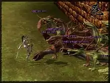 Players may use their character to fight monsters and opponents in the same ways; they can use their normal attacks which do not consume magic points, and also can use their special attacks which consume magic points. Monsters give experience and items, which can vary between different monsters.