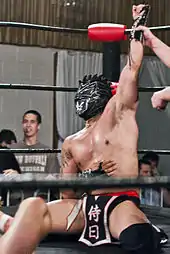 During mid-2011, Mexican luchador Crazy Boy, who saw Samuray during his Mexican debut, got him a spot in AAA's reality television program ¿Quién Pinta Para La Corona?.[15][22] While taking part in the program, Samuray also returned to Crazy Boy's DTU promotion.[23][24][25] During the taping of the program, he also underwent further training under veteran luchador Gran Apache, whom he credits with "perfecting [his] career".[26] Although he did not earn a contract with AAA through the program,[27] Samuray was able to make his AAA main card debut on August 19, 2012, when he teamed with Joe Líder and Juventud Guerrera in a six-man tag team match, where they were defeated by the villainous La Sociedad trio of Daga, Dark Dragon and Psicosis.[28] During September, Samuray worked several multi-man tag team matches against Los Inferno Rockers (Devil Rocker, Machine Rocker, Soul Rocker and Uro Rocker), losing all of them.[29][30]