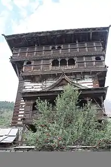 The village is an ancient capital of the Bashahr principate. It is especially known for the tower-like fort at its highest point, which was made by Lord Badrinath Ji thousands of year ago. Inside the fort there are about 33 crore (330,000,000) gods and goddess. There is also a shrine to Kamakhya Devi inside the fort campus, which was brought there many years ago from Assam. It is about 2 km from the tourist town of Sangla, on the foot of Kinner-Kailash (House of Lord Shiva).