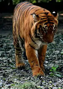 Mammals at the zoo include white tigers, leopard, hyena, black bear, grizzly bear, sloth, rhinoceros, hippopotamus, monkeys, langur, baboons, musk deer, deer, zebra, and antelope.[6] chimpanzees (including a 26-year-old named Chhajju) and orangutans (including a 30-year-old named Mangal) have their own island. Some monkeys and deer are allowed to roam outside the enclosures as natural inhabitants of the zoo.