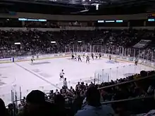 On April 16, 2009, the Central Hockey League announced an expansion team for Independence, to begin play in the 2009–10 season.[3] The new organization teamed up with local newspaper The Examiner to hold a name-the-team contest until May 11. The Missouri Mavericks' name, logo, and colors were unveiled on June 24.[4] On May 29, 2009, it was reported that Scott Hillman would be the Mavericks' first head coach, resigning from his same position with the Southern Professional Hockey League's Knoxville Ice Bears to do so. In his time with the Ice Bears, Hillman led them to two consecutive SPHL President's Cup championships and Coffey Trophies (awarded for the most regular-season points).[5][6] On November 13, 2009, the team played their home opener before a crowd of 5,760 people at the Independence Events Center.[7]