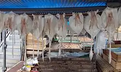 Yobuko is famed for its fresh squid, Ika (烏賊) (いか) in Japanese, which is offered sashimi style, or it can be eaten while the squid is still alive. Yobuko also attracts local tourists, who come to see the Yobuko Big Bridge (呼子大橋).