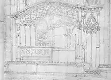- 1640 drawing of the tombs of Katherine Swynford and her daughter Joan Beaufort in Lincoln Cathedral before the tombs were despoiled in 1644 by the Roundheads