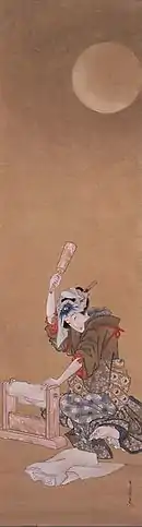 - Kinuta a.k.a. Beauty Fulling Cloth in the Moonlight (date unknown) — Single-sheet woodblock print. Tokyo National Museum collection.