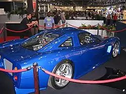 Eventually, a prototype was placed on display at the 2006 British International Motor Show in London. The inaugural design of the car was inspired by the American Saleen S7 for its front section, and the Italian Pagani Zonda for its rear structure. At the time of its official release in mid-2006, the Barabus TKR was promoted as a supercar that could reach a top speed of 435 kilometres per hour (270 mph),[5] with the capacity to reach 60 miles per hour (97 km/h) from a stationary position in 2 seconds.[6]