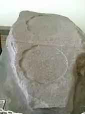 Kebon Kopi I also known as Tapak Gajah inscription (elephant footprint inscription),[1] is one of several inscriptions dated from the era of Tarumanagara Kingdom circa 5th century.[2] The inscription bearing the image of elephant footprint, which was copied from the elephant ride of King Purnawarman of Tarumanagara, which is equated with Airavata, the elephant vahana (vehicle) of Indra.[3]:16