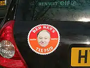 Initially presenting a motion to the GLC Labour groups that they refuse to comply with the judicial decision and continue with the policy regardless, but was out-voted by 32–22; many commentators claimed that Livingstone had only been bluffing in order to save face among the Labour Left.[87] Instead, Livingstone got on board with a campaign known as "Keep Fares Fair" in order to bring about a change in the law that would make the Fares Fair policy legal; an alternate movement, "Can't Pay, Won't Pay", accused Livingstone of being a sell-out and insisted that the GLC proceed with its policies regardless of their legality.[88] One aspect of the London Transport reforms was however maintained; the new system of flat fares within ticket zones, and the inter-modal Travelcard ticket continues as the basis of the ticketing system.[89] The GLC then put together new measures in the hope of reducing London Transport fares by the more modest amount of 25%, taking them back to roughly the price that they were when Livingstone's administration took office; it was ruled legal in January 1983, and subsequently implemented.[90]