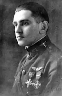 Porter was an engineering graduate from Michigan University who joined the U.S. Army Air Service in August 1917. He reported to the 147th Aero Squadron in February 1918.[2] While on patrol with Ralph O'Neill and four other American pilots, they shot down a Pfalz D.III over Château Thierry on 2 July. After switching his Nieuport 28 for a Spad XIII, Porter would score four more times, from 28 September through 12 October 1918, sharing his scores with Wilbert White, Francis Simonds, and three other pilots. He also became a Flight Commander.[1] He received the Distinguished Service Cross and the French Croix de Guerre.[3]