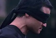 Tancharoen released a first look at the character in January 2013 by posting on Instagram an editing-room shot of Kenshi's "blinding" scene. Legacy fight choreographer Larnell Stovall called the Ermac/Kenshi fight a personal "geek-out moment," because "who would have thought we would see those two fight in a web series?"[18] In a June 2013 interview with Nerd Reactor, Southworth, who said that Kenshi was his favorite MK character, explained that Kenshi's lack of backstory allowed him to "fill in the blanks with history," giving the character "a clan or a region that he probably came from ... and why he was rogue at the time," but neither were ever explored in the show. Southworth also said that the blindfold he wore was real and that there were "moments where I was just swinging my arms out and was hoping that it connected in the right place, or not."[1] Like Ermac, Kenshi was given a completely black palette in the show that eliminated all traces of red from the game version of the character, with his armor replaced by a more modernized design slightly resembling tactical gear. The Sento sword itself deviated from a traditional katana in the games to the hilt being adorned with small gray skull carvings and having no hand guard.