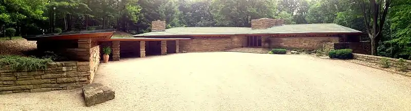 Forgoing the site's uppermost location and its commanding views, Wright characteristically chose a challenging and less obvious site immediately south of the site's hilltop, nestling the house into the hillside[5] (allowing the building to grow out of rather than dominate its setting) and orienting the house to the south and west for optimal solar exposure.