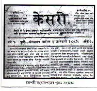 Kesari (Marathi: केसरी Sanskrit for Lion) is a Marathi newspaper which was founded in 1881 by Lokmanya Bal Gangadhar Tilak, a prominent leader of the Indian Independence movement. The newspaper was used as a spokes piece for the Indian national freedom movement, and continues to be published by the Kesari Maratha Trust and Tilak's descendants.[1][2][3]