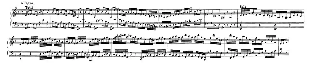 which, when they recur later, become increasingly virtuosic and eventually merge into brilliant filigree semidemiquaver figures—typical of the harpsichord—in the final extended cadenza-like episode before the concluding ritornello.[24][25]