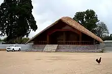 Khasi mythology traces the tribe's original abode to 'Ki Hynñiewtrep ("The Seven Huts").[4] According to the Khasi mythology, U Blei Trai Kynrad (God, the Lord Master) had originally distributed the human race into 16 heavenly families (Khadhynriew Trep).[5] However, seven out of these 16 families were stuck on earth while the other 9 are stuck in heaven. According to the myth, a heavenly ladder resting on the sacred Lum Sohpetbneng Peak (located in the present-day Ri-Bhoi district) enabled people to go freely and frequently to heaven whenever they pleased until one day they were tricked into cutting a divine tree which was situated at Lum Diengiei Peak (also in present-day East Khasi Hills district), a grave error which prevented them access to the heavens forever. This myth is often seen as a metaphor of how nature and trees, in particular, are the manifestation of the divine on Earth and destroying nature and trees means severing our ties with the Divine. Like the Japanese, the Khasis use the rooster as a symbol because they believe that it was he who aroused God and also humbly paved and cleared the path for God to create the Universe at the beginning of time. The rooster is the symbol of morning marking a new beginning and a new sunrise.