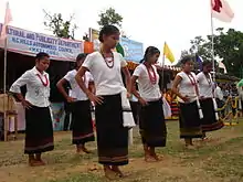 The Sakachep are known for their distinct style of dress. The women wear strings of different beads and coins around their neck. Today, the majority of the young boys and girls of the villages wear pants, shirts and traditional Mekhela. The older men simply wear a Dhoti|dhuti.
