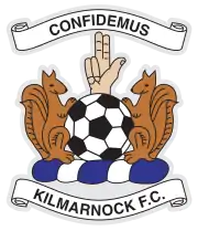 The club badge is a modernised version of previous club badges. It features a ball bearing a hand in a blessing position, flanked by two red squirrels. The club's Latin motto, confidemus (we trust), is written above the badge (similar to the Clan Boyd heraldic motto, confido (I trust)). The club adopted the badge in 1993 after The Lord Lyon decreed that the previous badge, based heavily upon the town crest, was in breach of ancient Scottish heraldic rules.