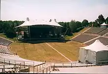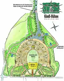 The Kindl-Bühne Wuhlheide (English: Wuhlheide Kindl Stage) is a cultural heritage site in Berlin which serves as an open-air performance venue in the shape of an amphitheater. It is part of Volkspark Wuhlheide (English: Wuhlheide Public Park) in the Berlin-Oberschöneweide neighborhood in the district of Bezirk Treptow-Köpenick. The Kindl-Bühne has a non-seated spectator capacity of 17,000 and a seated capacity of 15,300. It is the second-largest open-air stage in Berlin, trailing only the Waldbühne in size.