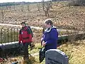 The gravestone of Margaret Keir, widow of William Small being examined for lichens