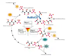 2 by RuBisCO is a multi-step process. First, a CO