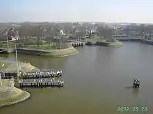 The King Albert I Memorial, also named the King Albert I Monument (Dutch: Koning Albert I-monument; French: Monument au Roi Albert Ier) is a memorial at the Belgian coastal city of Nieuwpoort. It is located right outside the old town, on the right bank of the Yser river at the lock complex Ganzepoot. The monument was erected in 1938 after a design of Julien de Ridder and honours both King Albert I of Belgium and the Belgian troops at the time of the First World War.