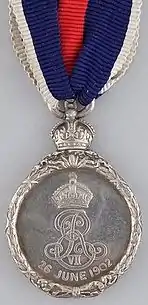 - The special medal, in silver only, awarded to Mayors and Provosts is circular, but otherwise of a broadly similar design. It has a ribbon of dark blue with red edges and a narrow white central stripe.[6]
