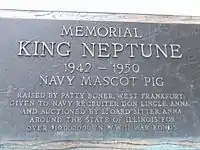 King Neptune (1941–1950) [sic] Buried here — King Neptune, famous Navy mascot pig auctioned for $19,000,000.00 in war bonds 1942–1946 to help make a free world.[14]