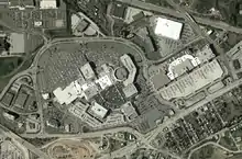 The mall has several outparcels, and several luxury and affordable hotels are nearby.[7] Among the outparcels is the Overlook at King of Prussia shopping center, which consists of a United Artists Theatres, Saks Off 5th, Best Buy, and an iFLY indoor skydiving center.[11] Lockheed Martin also has a campus overlooking the mall area.[7] Also located nearby is the King of Prussia Town Center, a lifestyle center that consists of Wegmans, multiple other big-box retailers, and a downtown area with dining, retail, and service establishments and a Town Square.[12][13] The town center is part of the Village at Valley Forge, a 122-acre mixed-use development under construction that consists of retail, apartments, townhouses, condominiums, office space, and the Children's Hospital of Philadelphia's Specialty Care and Surgery Center.[12][14]