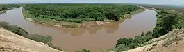 To draw a reference frame, the Maliri people originally from Omo Valley in Ethiopia immigrated into Kenya and Uganda, breaking into groups in the following order: Merile and Pokotozek. Merile reverted to Southern Ethiopia. Pokotozek moved to a region between Mount Cherangany and Mount Moroto and then to Lake Baringo thus disturbing a community called Oropom (an aboriginal and indigenous community to the region)who thus dispersed in various directions (Turkwel excursion, Uasin Ngishu excursion which was likely adopted to the Maasai and Oropom,- an excursion which shrunk to a region they had already been occupying around Chemorongit hills and South of Mount Moroto hills). Pokotozek went on to defeat Lloikop Maasai at Baringo and thus Pokotozek broke into two, a community called Chok or the Suk who occupied Baringo while another branch moved west and called itself Sebei. The Chok or Suk are then known to have transformed from being farmers into pastoralists and as the two factions developed, Chok consumed Suk and the new confederation became known as Pokot.[8] Neighbouring the Maliri descendant groups were the Lumbwa (although this community could have been confused for other groups such as Siger/Sengwer),[9] Sekker/Siger/Sengwer[10] and Karamojong.[11]