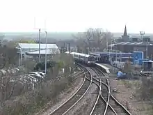A proposal to bring two railway lines to the town had been suggested as far back as 1836, but neither plan succeeded. This led for pressure to support a new line from Burntisland to Newport-on-Tay and Tayport via Kinghorn, Kirkcaldy, Markinch and Cupar in 1840. However, it was three years before Parliament even acknowledged this essential plan. A unanimous decision was passed in favour by both the House of Lords and Commons.[5] Kirkcaldy railway station, along with now defunct stations in Sinclairtown and Dysart, finally opened on 20 June 1847[5][6] as part of the Edinburgh and Northern Railway, which terminated at Cupar. Train services were later taken over by the North British Railway, which was absorbed by the London and North Eastern Railway in 1923. The nationalised British Railways took over in 1948.