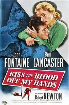 Kiss the Blood Off My Hands is a 1948 American film noir crime film directed by Norman Foster starring Burt Lancaster, Joan Fontaine and Robert Newton based on a novel of the same name by Gerald Bulter.[3][4] It was the first film made by Hecht and Lancaster's production company, Norma Productions.